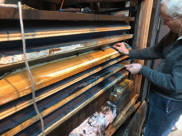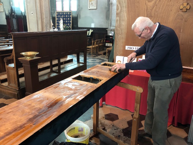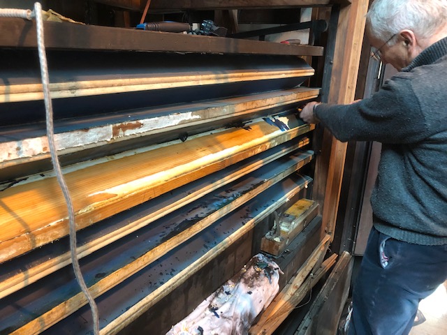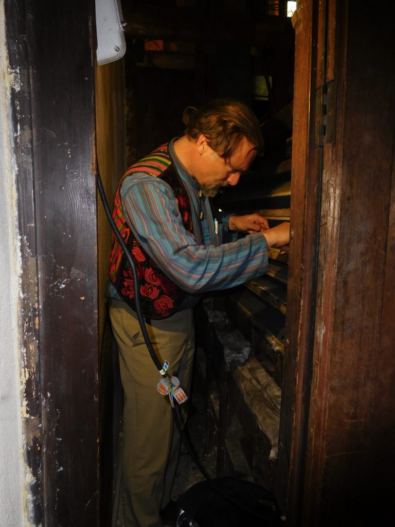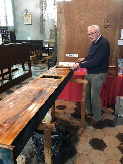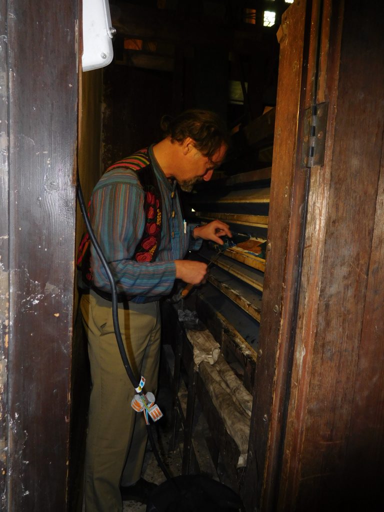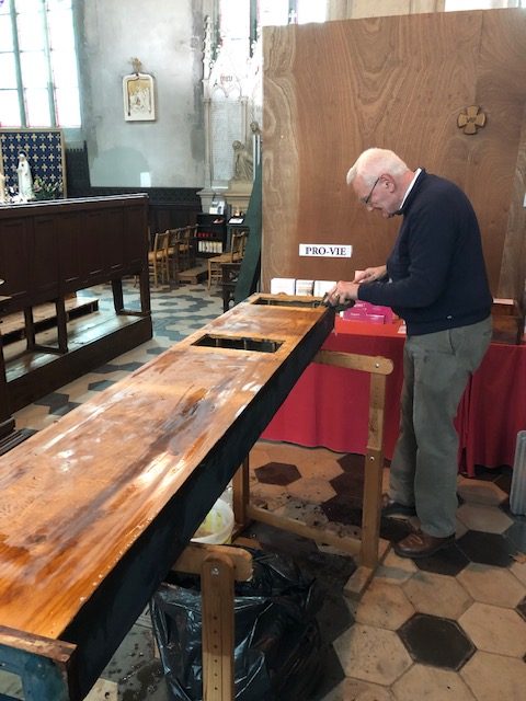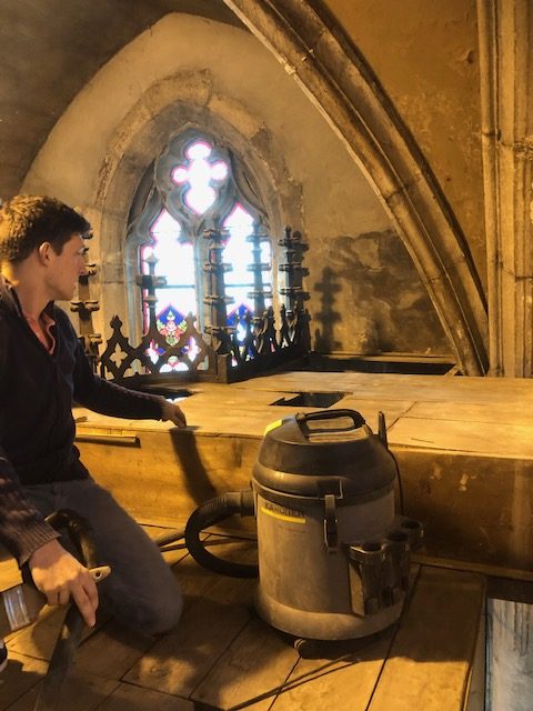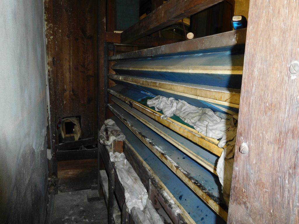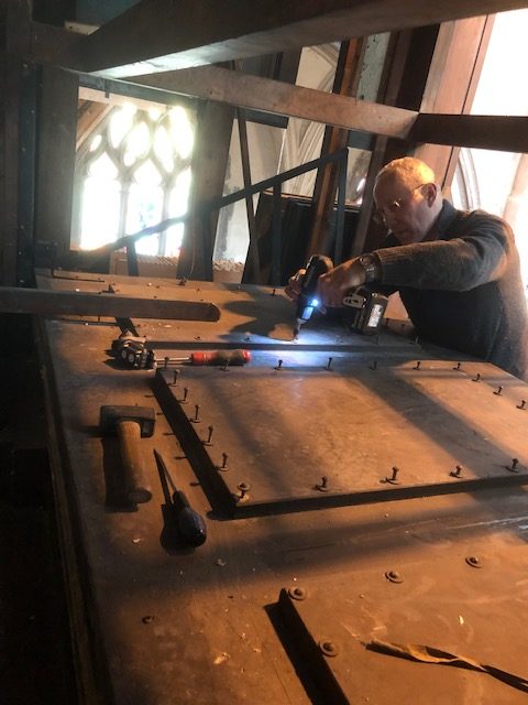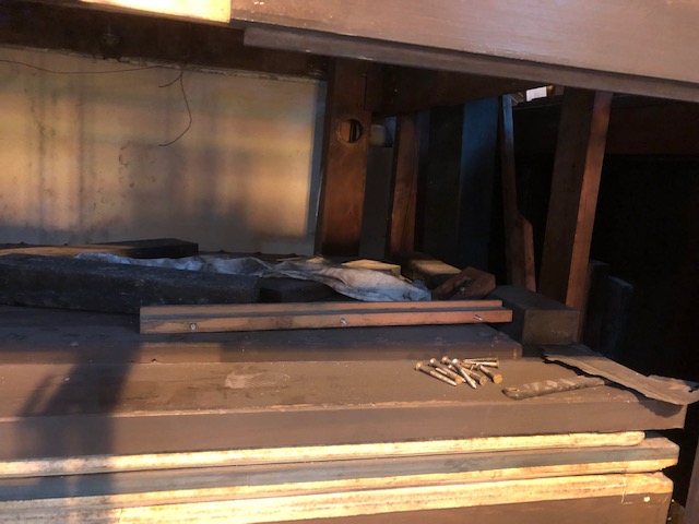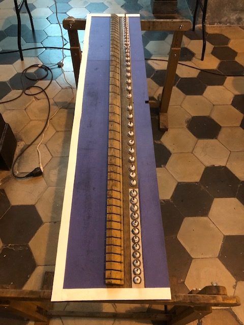 Les travaux ont commencé ! Une semaine active pour tout démonter, stocker les tuyaux (environ 1000) en bas de la tribune, et emporter en Alsace une partie des pièces (notamment la console) pour être réparées dans l’atelier d’ORGANOTECH.