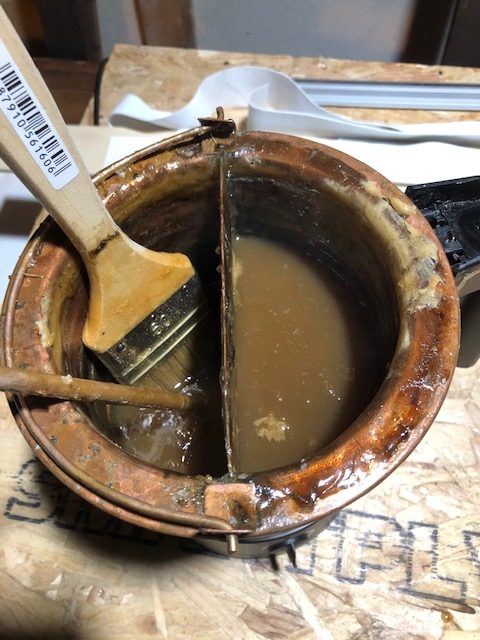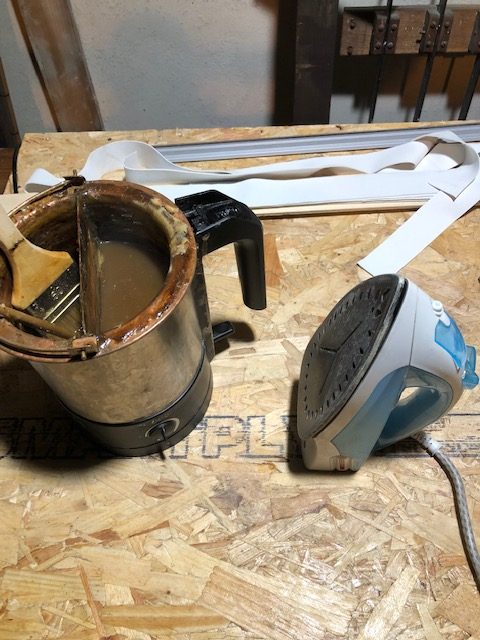 Le fer à repasser sert à réchauffer les éléments pour que la colle ne durcisse pas trop vite surtout en cette période froide.