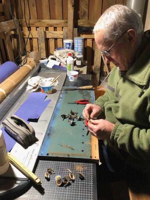 décapage des soufflets, collage des rondelles sous les chapes… :