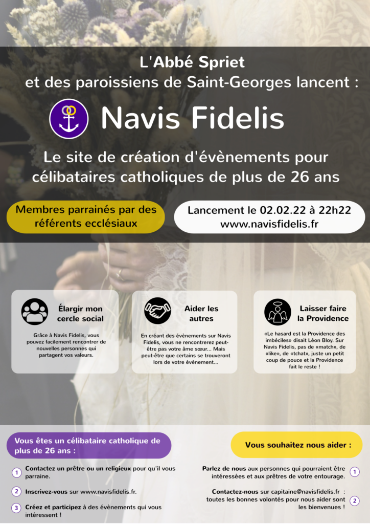 Cela fait maintenant six mois que Navis Fidelis, le site de rencontre pour catholiques pratiquants de plus de 26 ans, a ouvert ses portes. La plateforme rassemble aujourd’hui plus de 700 inscrits parrainés qui ont déjà organisé près de 300 évènements partout en France. La période estivale est l’opportunité de participer aux différentes soirées et sorties proposées par les membres sur le site. N’attendez plus et rejoignez l’aventure !
