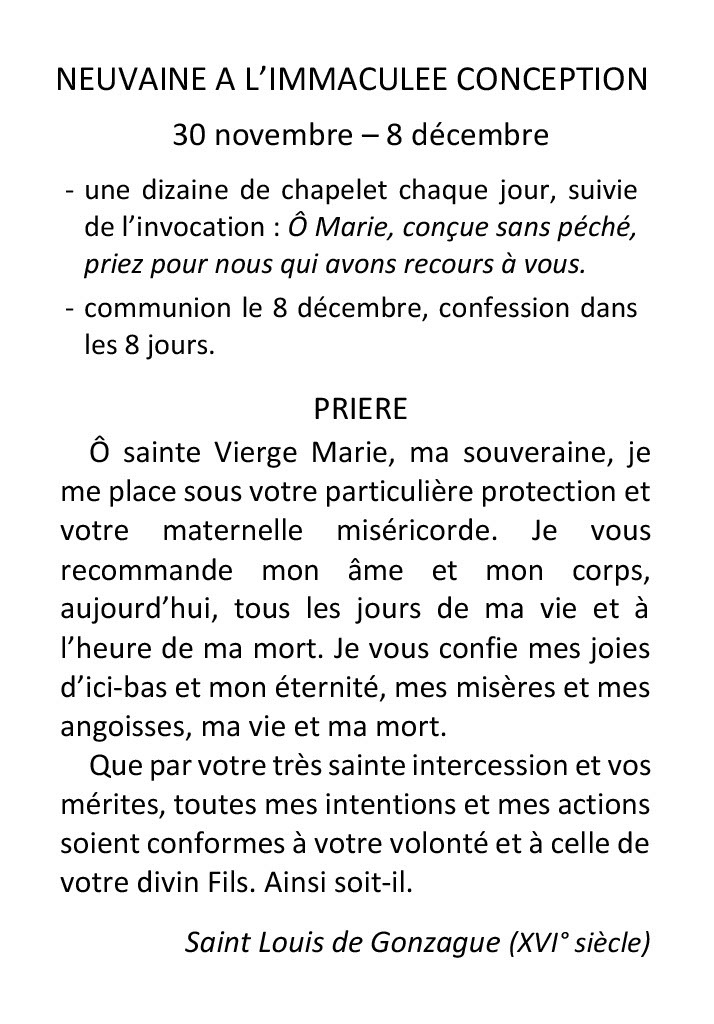 Evènement Neuvaine à l’Immaculée Conception du 30 novembre au 8 décembre 21 novembre 2025 Nous vous proposons cette prière (mais vous pouvez en choisir une autre) :